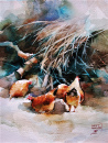 Escultura de Pedra em um Muro de um Templo Tailandês