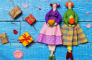 Ovos de Páscoa de crochê e bolo de Páscoa