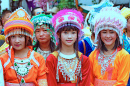 Mulheres em trajes folclóricos feitos à mão na Morávia