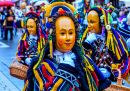 Dançarinos em um desfile de carnaval em Cuenca, Equador