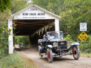Cruzando a ponte coberta de Cox Ford, Indiana, EUA