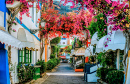 Rua Decorada com Bandeira, Mykonos, Grécia