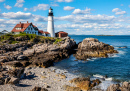 Puffins do Atlântico nas falésias da Ilha da Feira