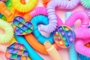 Brinquedos coloridos em um fundo rosa