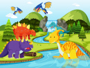 Ilustração horizontal com paisagem de dinossauro para a escola