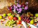 Arranjo de Natureza Morta com Flores e Legumes