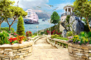 Vista matinal de Amalfi, Mar Mediterrâneo, Itália
