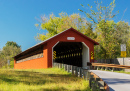 Cruzando a ponte coberta de Cox Ford, Indiana, EUA