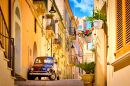 Um beco estreito de paralelepípedos na Cidade Antiga Europeia