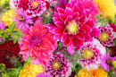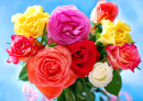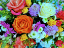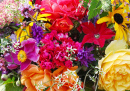 Buquê de primavera com ranúnculo, tulipas e anêmonas em cores brilhantes
