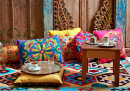 Tapetes e travesseiros no Souq Waqif, Doha, Qatar