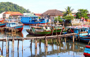 Casas coloridas no porto de pesca de Zhengbin, Taiwan