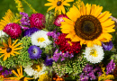 Buquê de flores brilhantes com girassóis