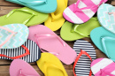 Tools and Accessories For Sewing On Light Wooden Background. Top View.