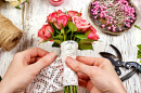 Fazendo um buquê de rosas frescas